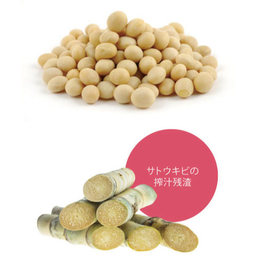 発酵バガスとは、サトウキビの搾汁残渣(絞ったあとの繊維成分)を発酵させてパウダー状にした原料です。